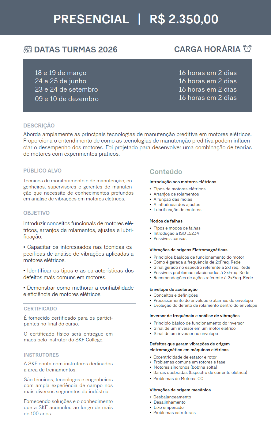 WI260 - Análise de Vibrações VI - Motores Elétricos - Presencial