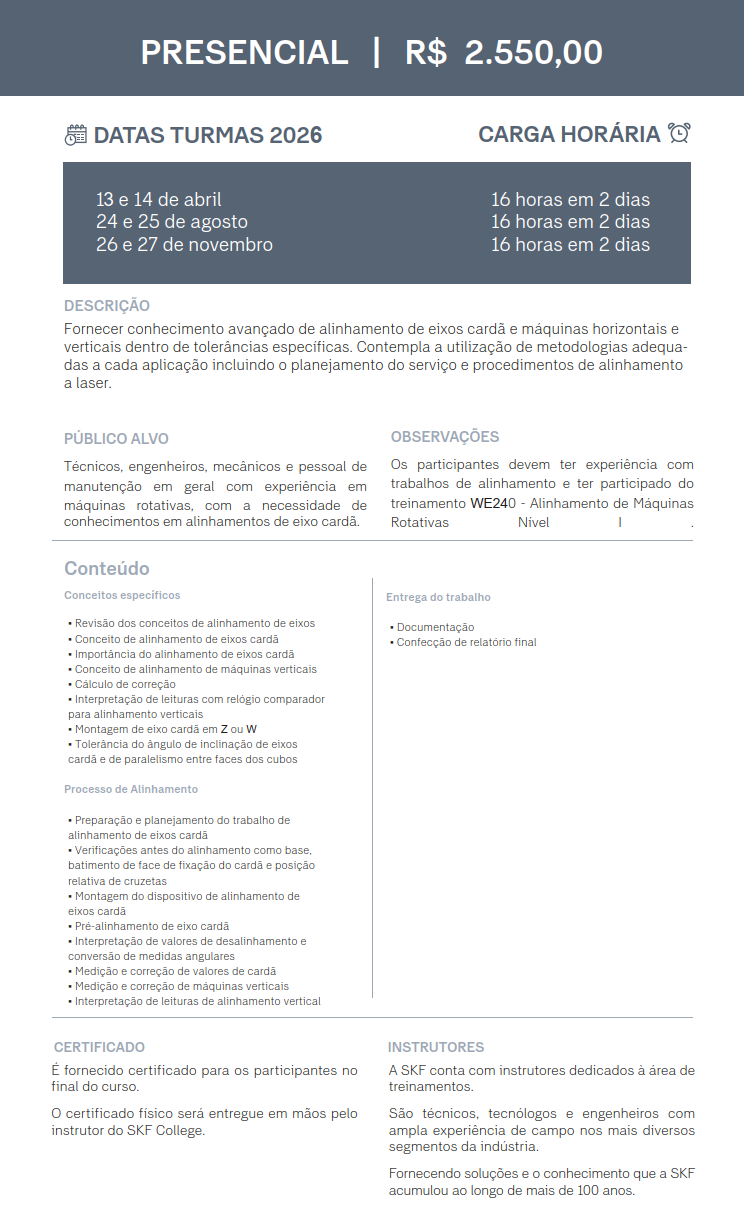 WE245 - Alinhamento de Máquinas Rotativas - Nível II - Cardã, Vertical e Polia - Presencial