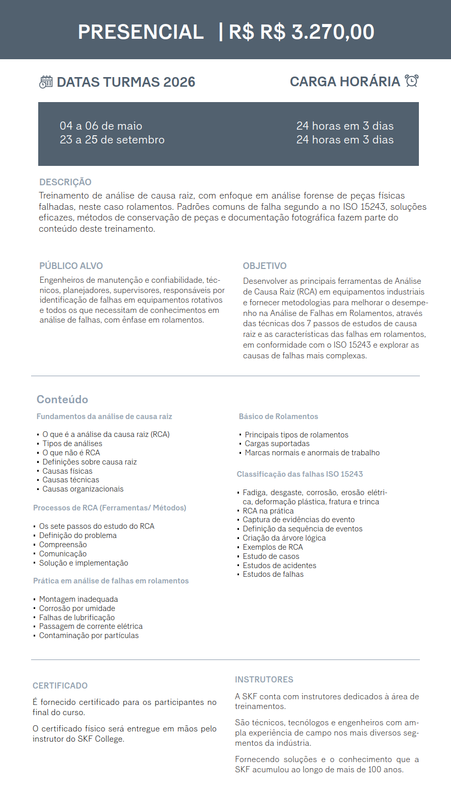LP200+WE204 - Análise de Causa Raiz com Ênfase em Falhas de Rolamentos - Presencial